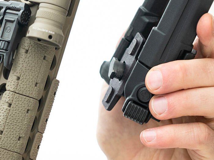 ה־MOE QD Bipod מותקן באמצעות כפתור כיוון ייעודי.