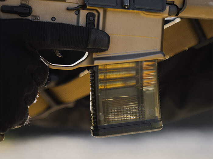 רצועות טקסטורה בחזית ובגב מספקות אחיזה מצוינת ושליטה מלאה במחסנית.