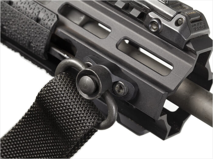מתאם M-LOK QD Sling Mount מספק נקודת חיבור קדמית לרצועות MS4 של Magpul ולרצועות QD נוספות עם חיבור Push-Button. המתאם מעובד מפלדה עמידה במיוחד, עם גימור QPQ Salt Bath Nitride לעמידות קיצונית בפני שחיקה וקורוזיה. העיצוב בפרופיל נמוך כולל קצוות משופעים להפחתת היתפסות, וכן מבנה נוגד-סיבוב (Anti-Rotation) המונע מהמחבר להסתובב בזמן שימוש. כל חומרת ההתקנה הדרושה לחיבור ישיר לחריצי M-LOK כלולה בערכה, ללא צורך בשום שינוי במתפס או ב־Forend תואמי M-LOK. מיוצר בארצות הברית