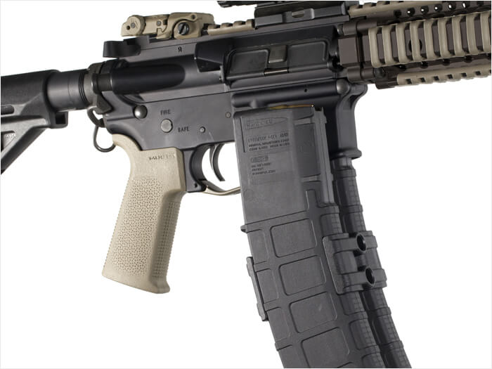 חריצים מובנים מתחברים לחריצי ה־PMAG כדי למנוע החלקה.